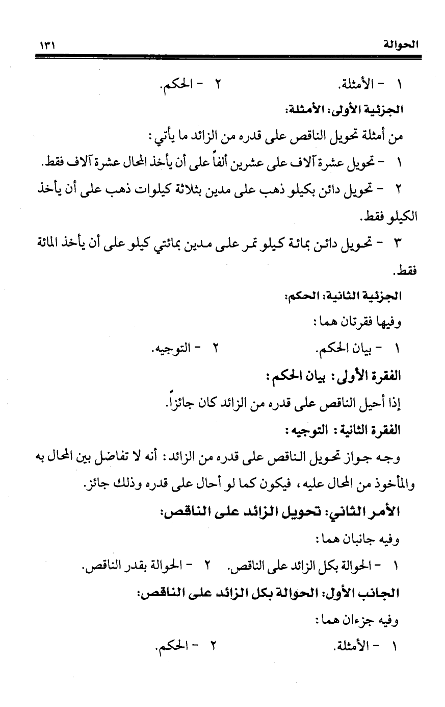 الجانب الأول: الحوالة بكل الزائد على الناقص: