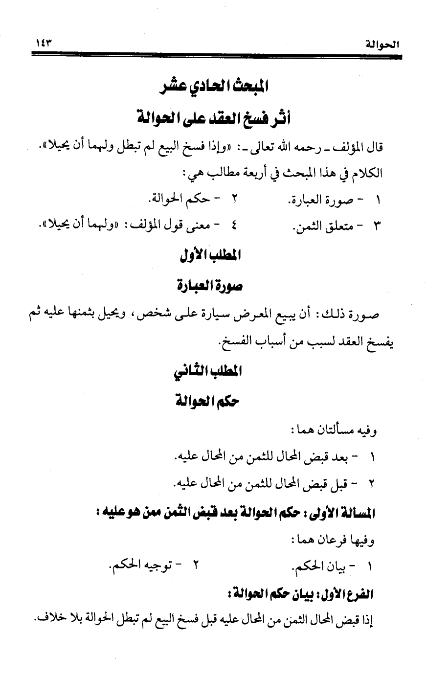 المبحث الحادي عشر أثر فسخ العقد على الحوالة