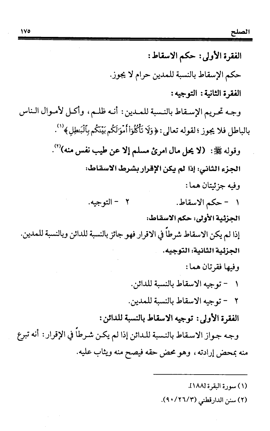 الجزء الثاني: إذا لم يكن الإقرار بشرط الاسقاط: