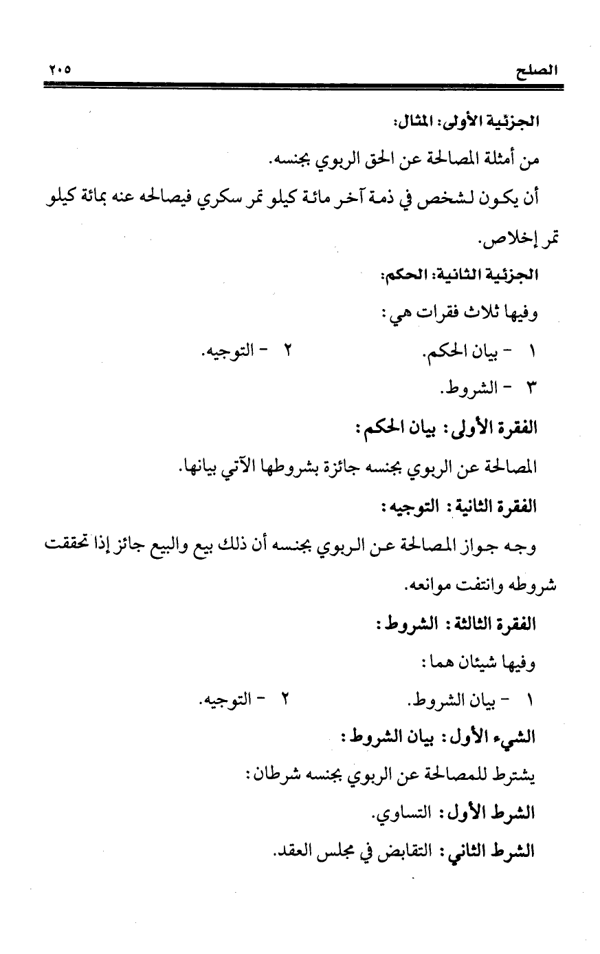 المصالحة عن الربوي بجنسه جائزة بشروطها الآتي بيانها.