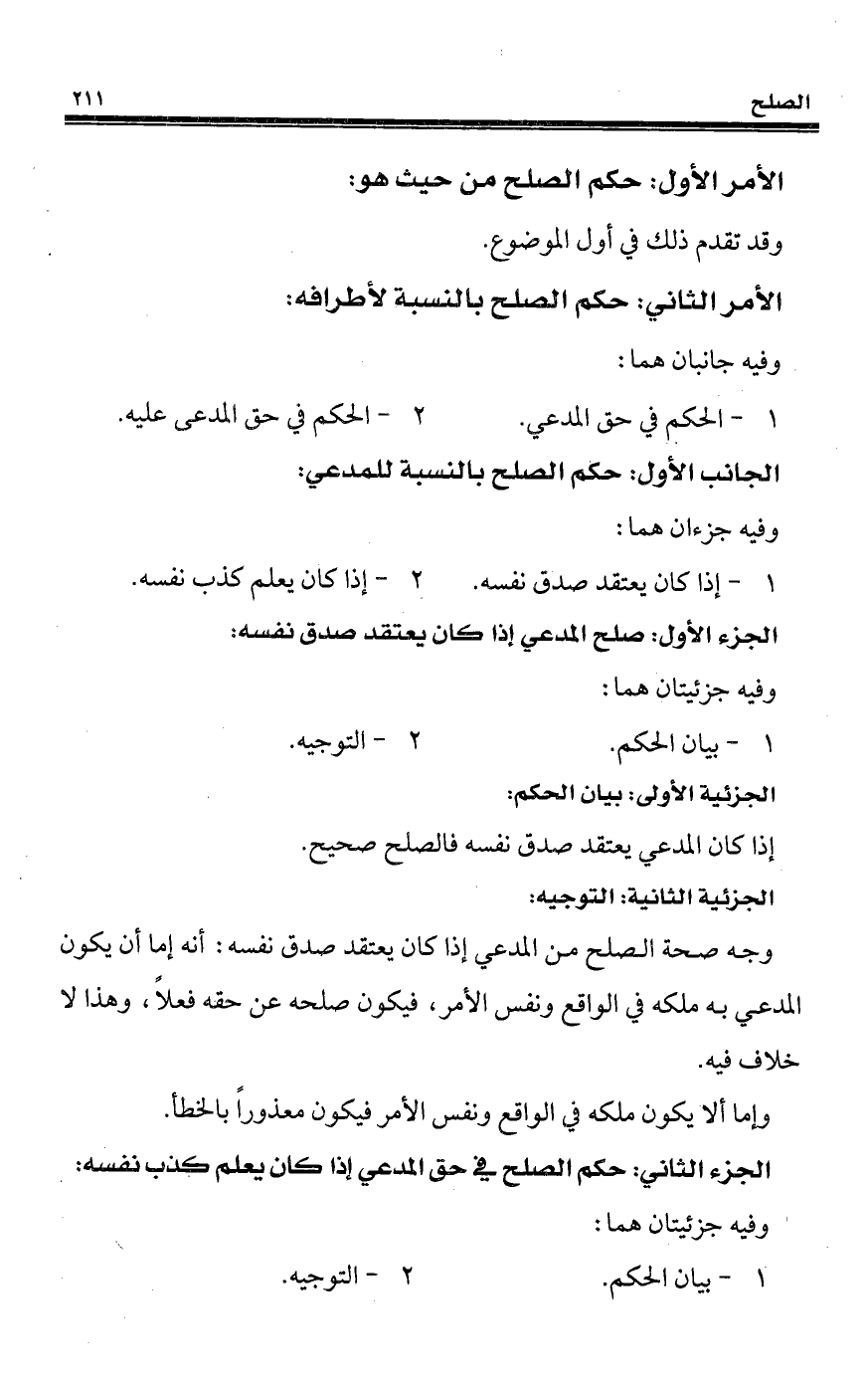 الجزء الأول: صلح المدعي إذا كان يعتقد صدق نفسه:
