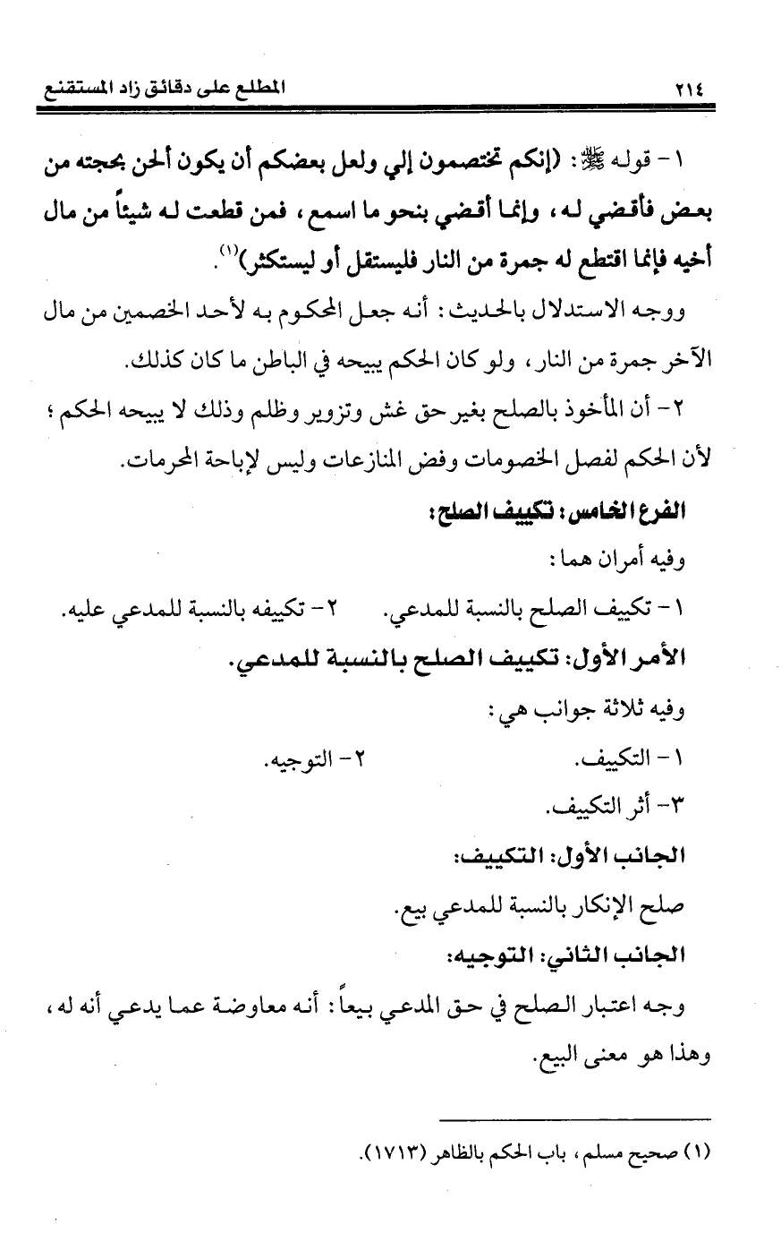 (¬1) صحيح مسلم، باب الحكم بالظاهر (1713).