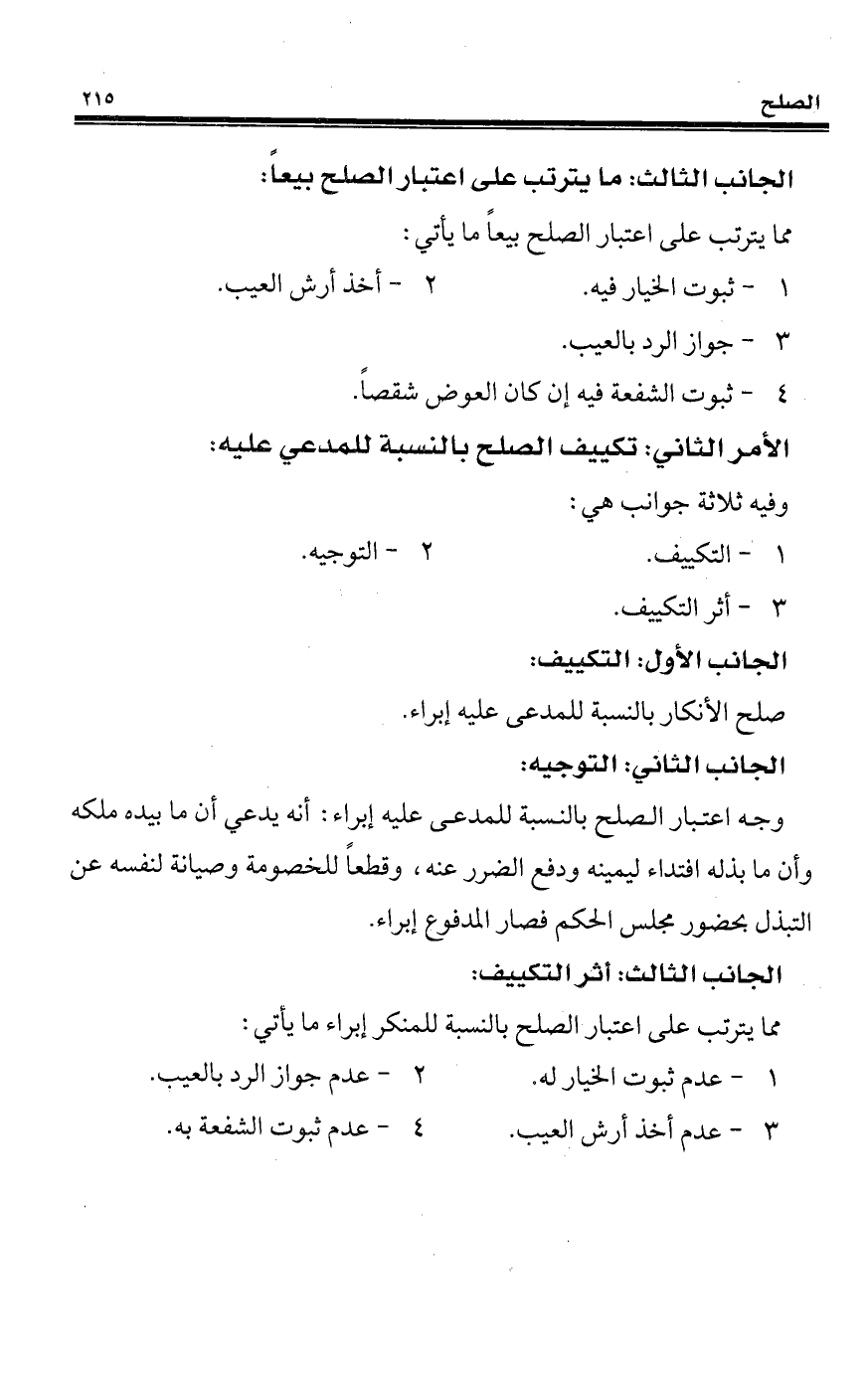مما يترتب على اعتبار الصلح بيعًا ما يأتي: