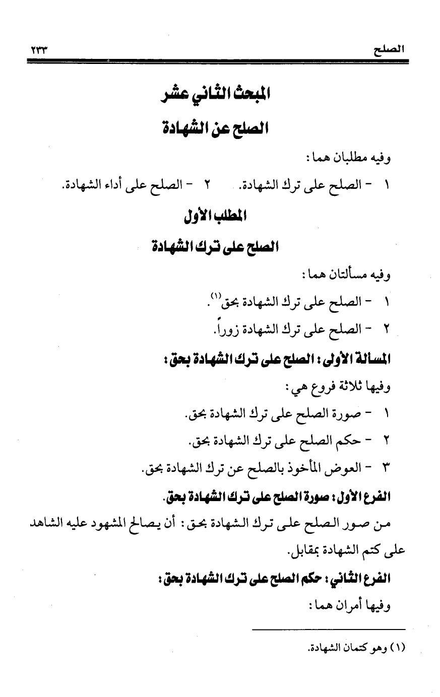 المبحث الثاني عشر الصلح عن الشهادة