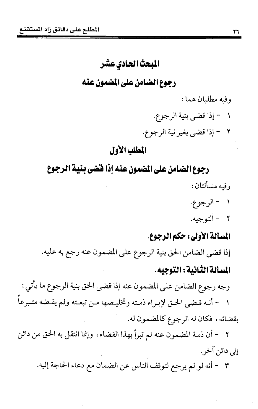المبحث الحادي عشر رجوع الضامن على المضمون عنه