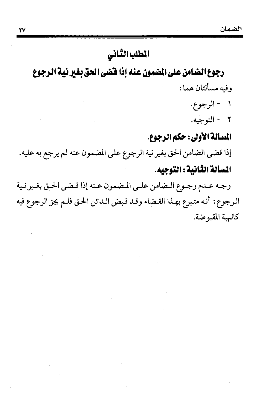 المطلب الثاني رجوع الضامن على المضمون عنه إذا قضى الحق بغير نية الرجوع