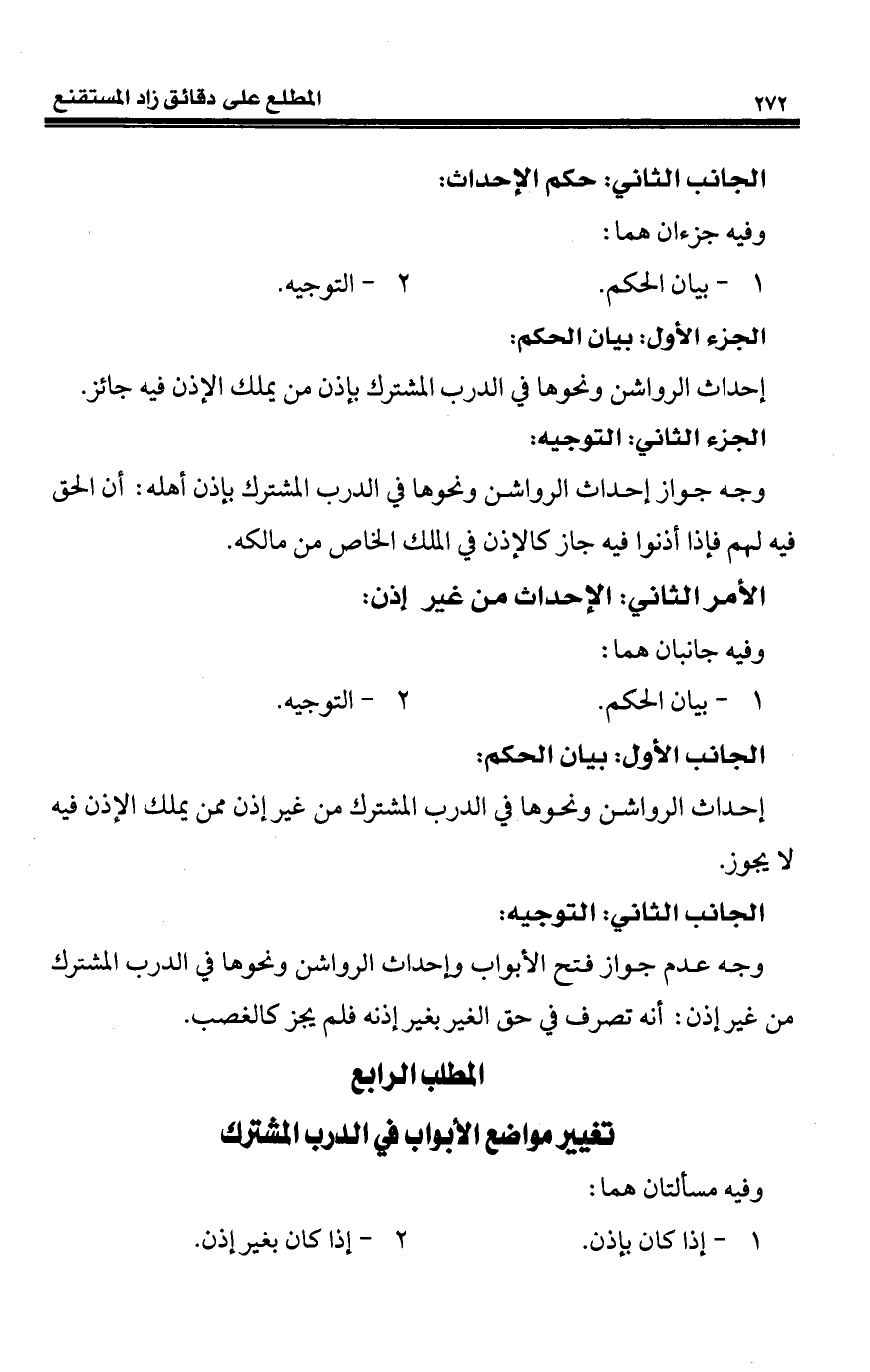المطلب الرابع تغيير مواضع الأبواب في الدرب المشترك