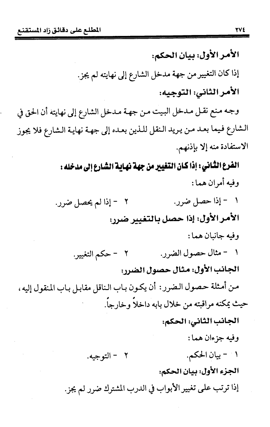 الفرع الثاني: إذا كان التغيير من جهة نهاية الشارع إلى مدخله: