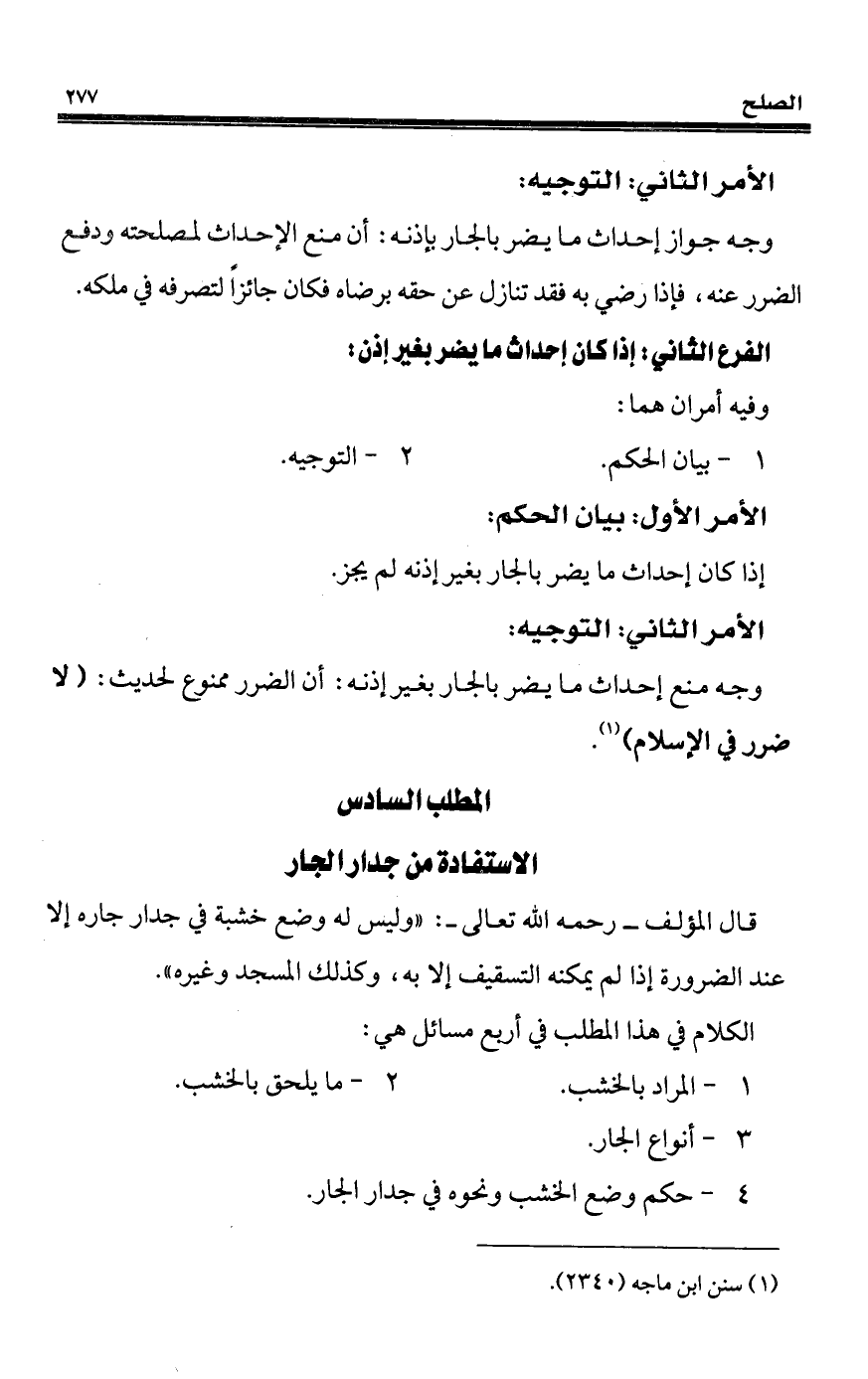 4 - حكم وضع الخشب ونحوه في جدار الجار.