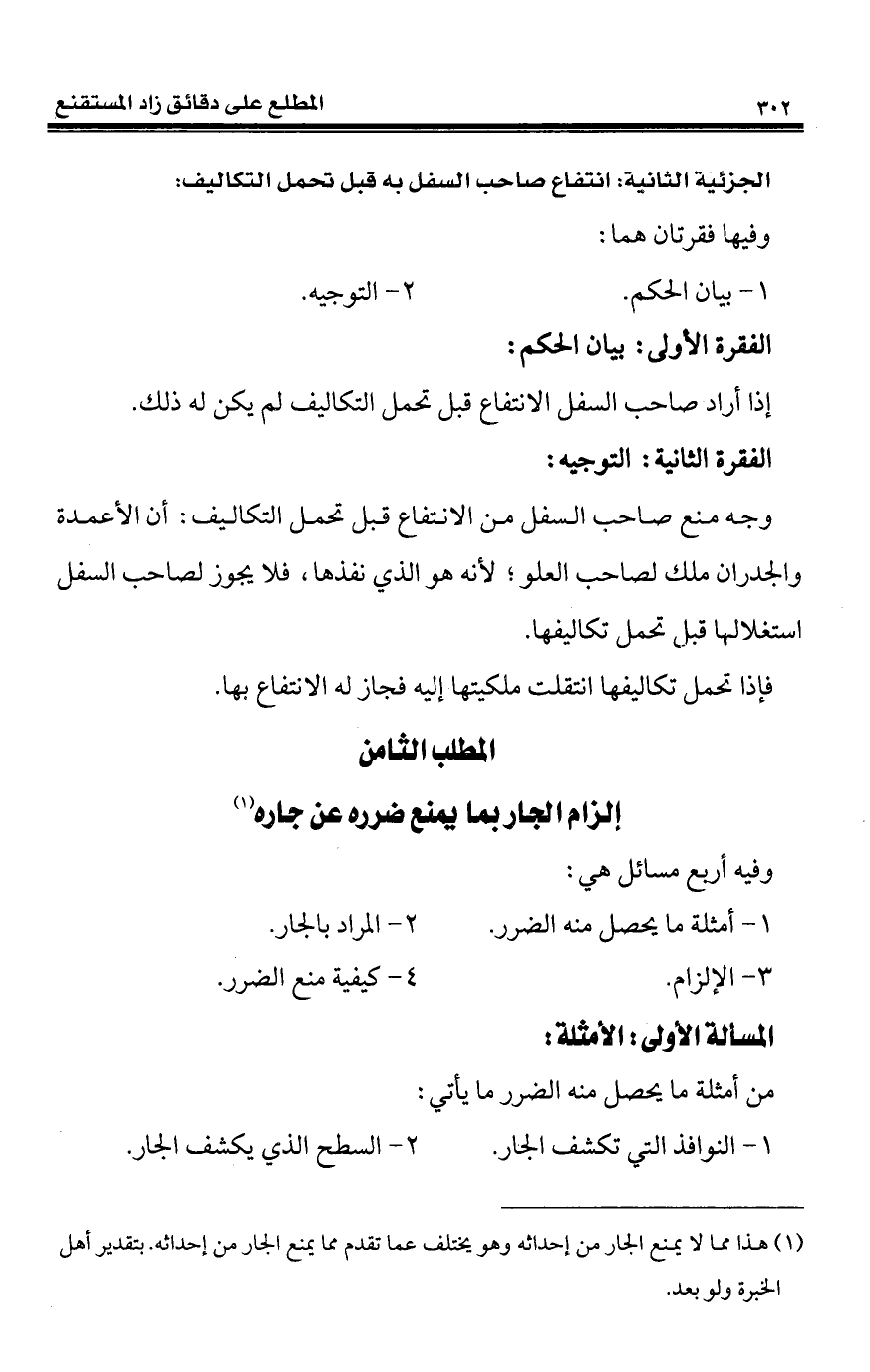 المطلب الثامن إلزام الجار بها يمنع ضرره عن جاره (¬1)