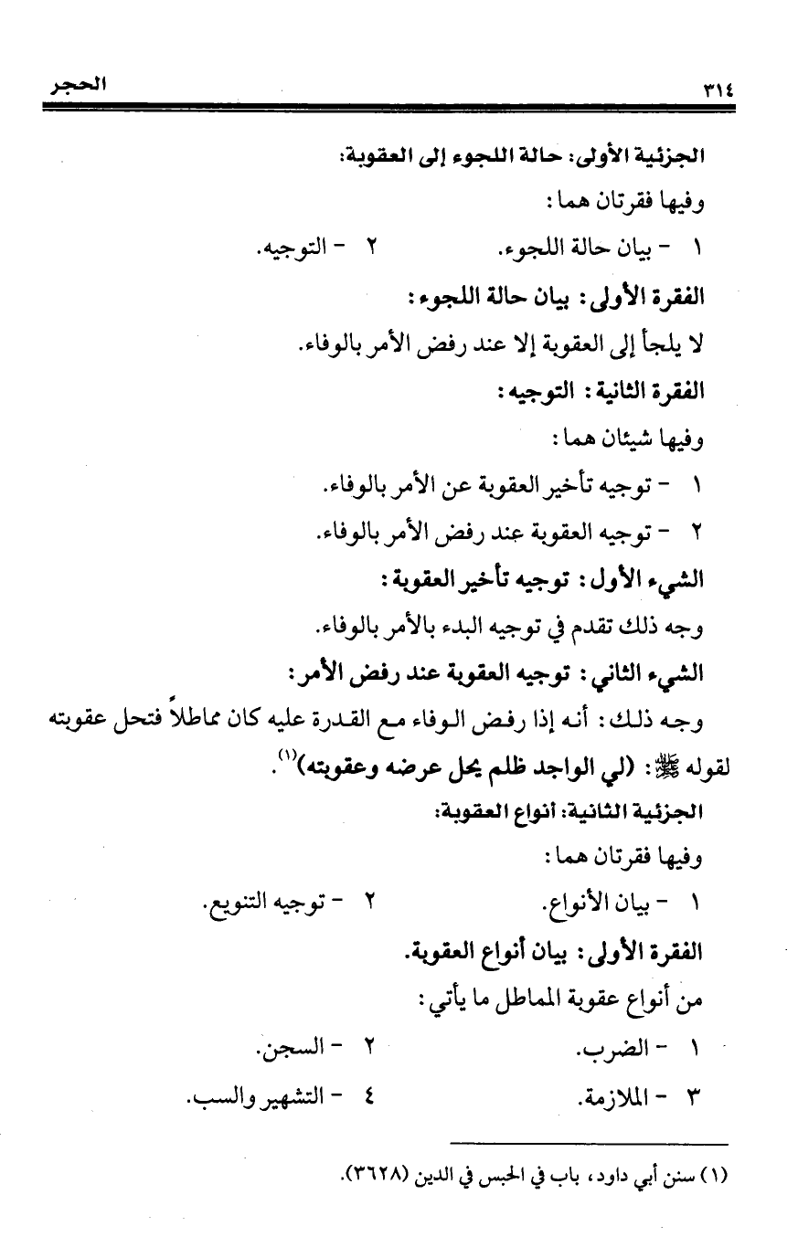 الفقرة الأولى: بيان حالة اللجوء: لا يلجأ إلى العقوبة إلا عند رفض الأمر بالوفاء.