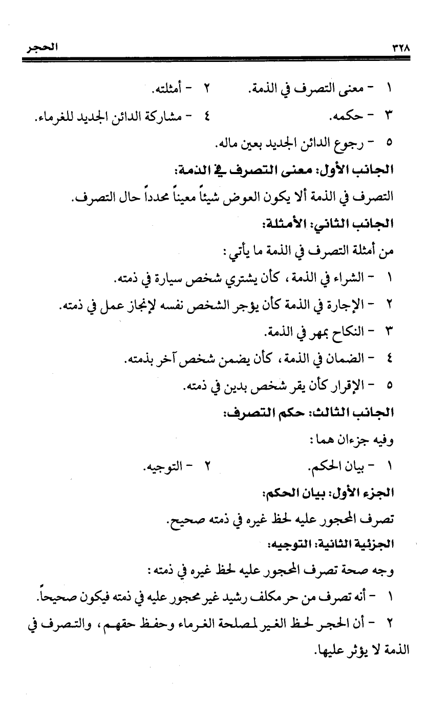 تصرف المحجور عليه لحظ غيره في ذمته صحيح.