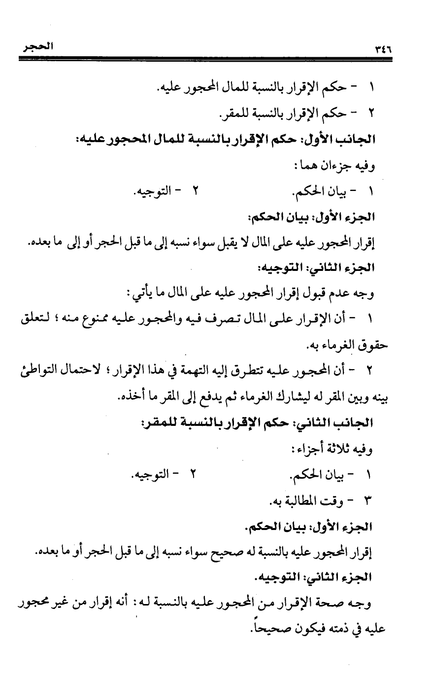 1 - حكم الإقرار بالنسبة للمال المحجور عليه.