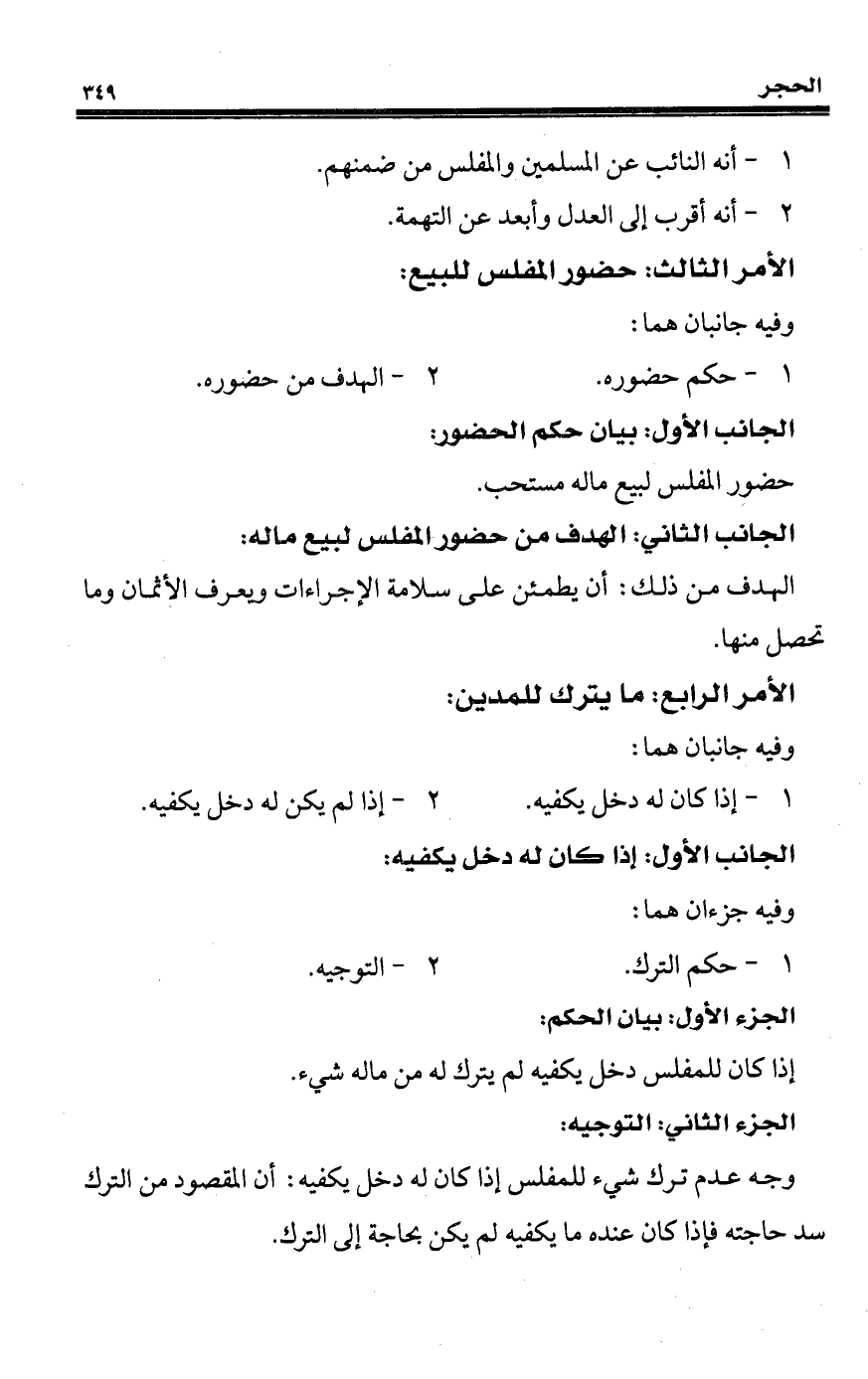 الجانب الثاني: الهدف من حضور المفلس لبيع ماله: