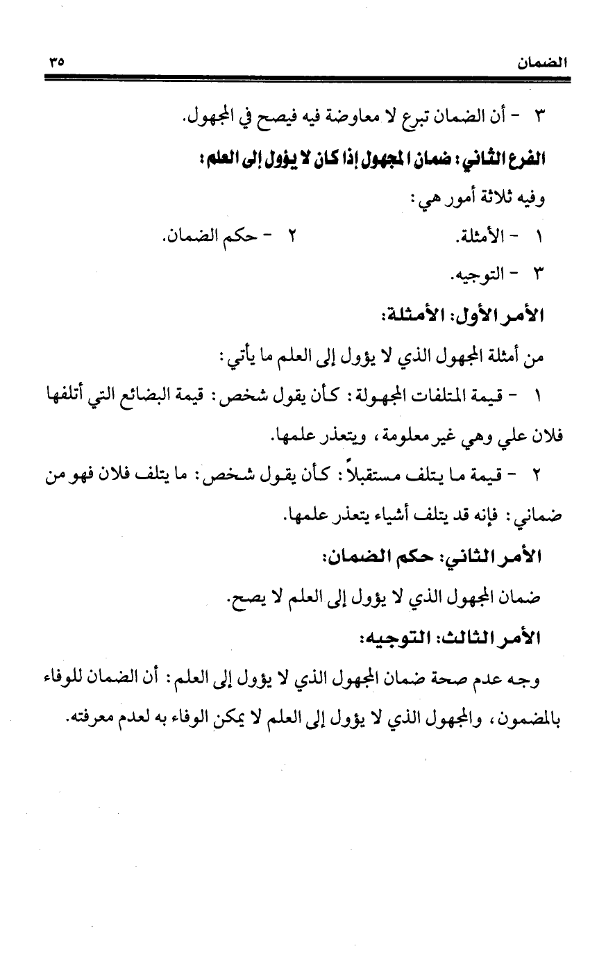 الفرع الثاني: ضمان المجهول إذا كان لا يؤول إلى العلم: