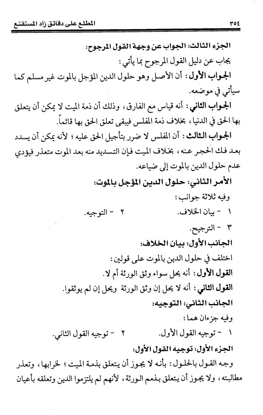 الجواب الأول: أن الأصل وهو حلول الدين المؤجل بالموت غير مسلم كما سيأتي في موضعه.
