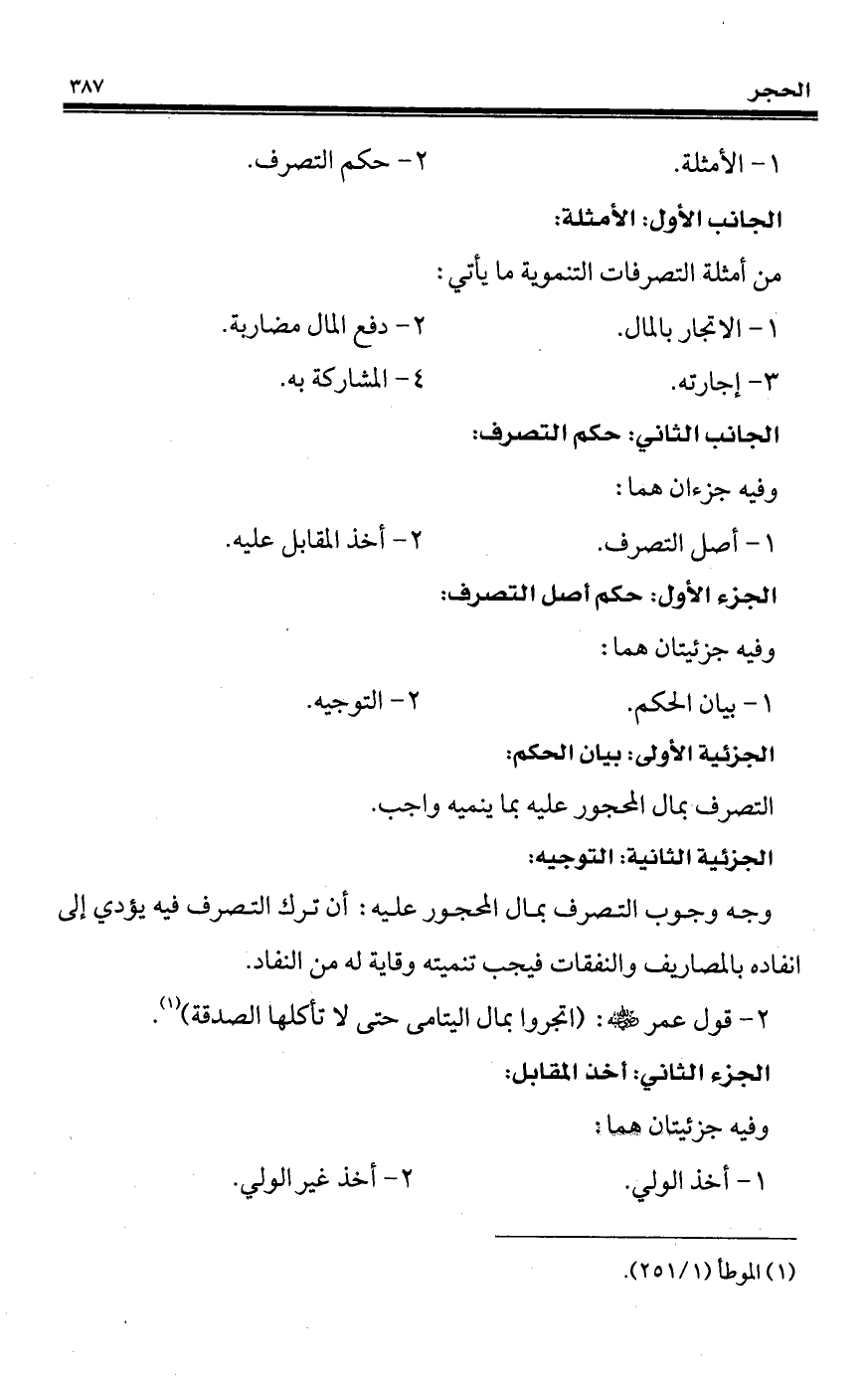 التصرف بمال المحجور عليه بما ينميه واجب.