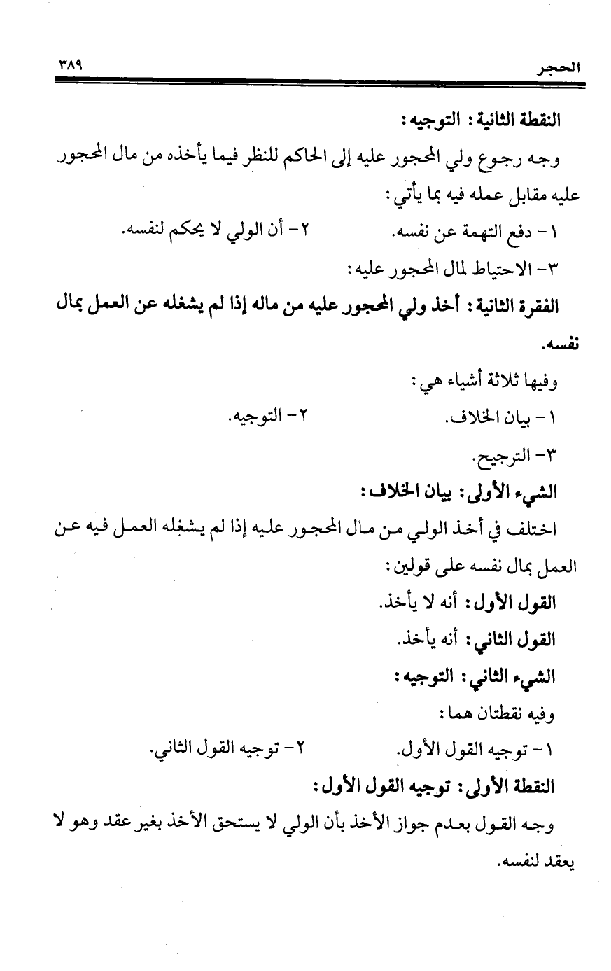الفقرة الثانية: أخذ ولي المحجور عليه من ماله إذا لم يشغله عن العمل بمال نفسه.