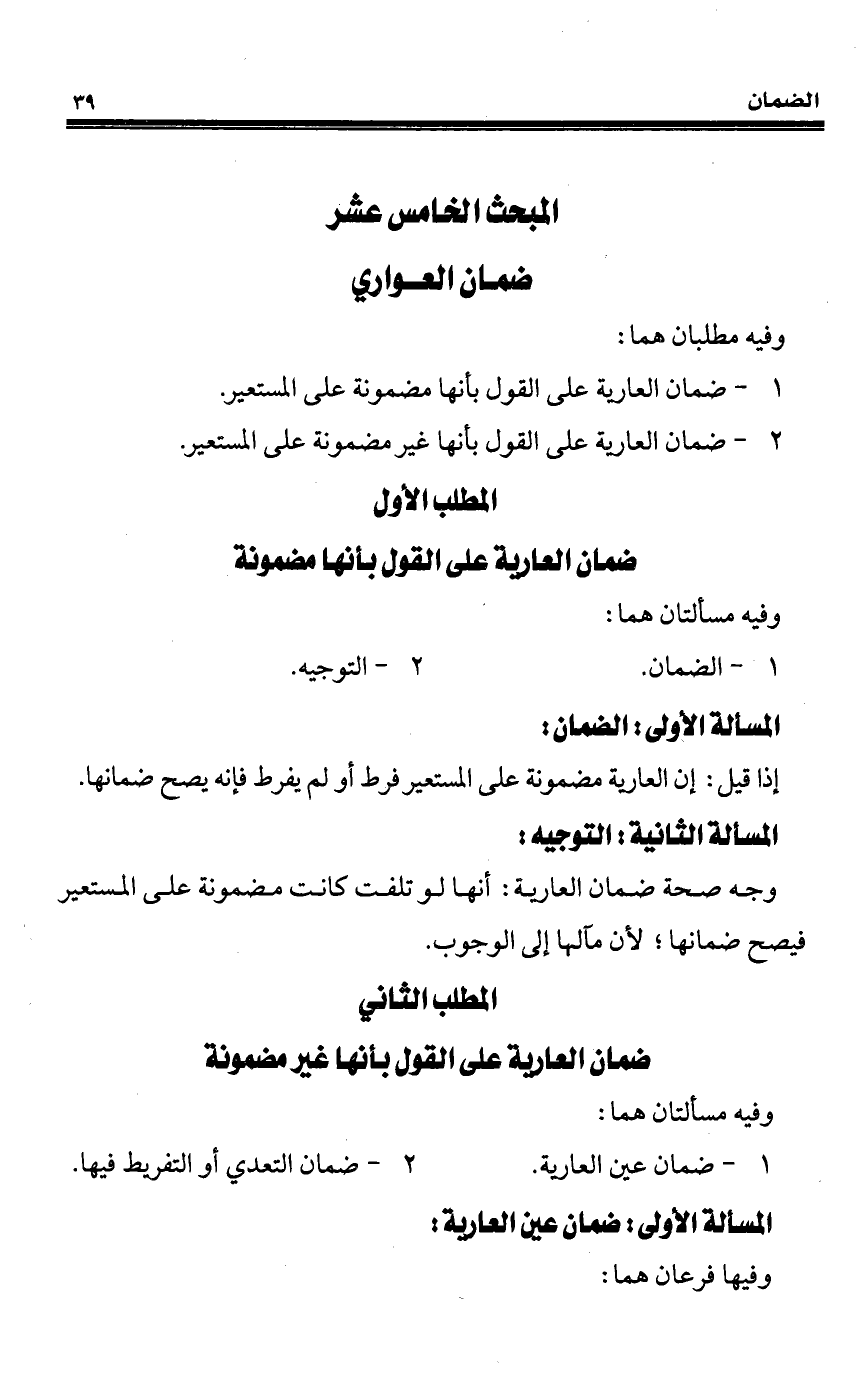 المبحث الخامس عشر ضمان العواري