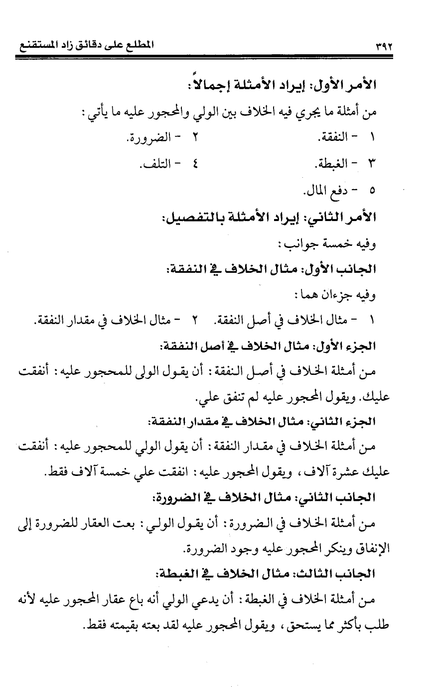 من أمثلة الخلاف في أصل النفقة: أن يقول الولى للمحجور عليه: أنفقت عليك. ويقول المحجور عليه لم تنفق علي.