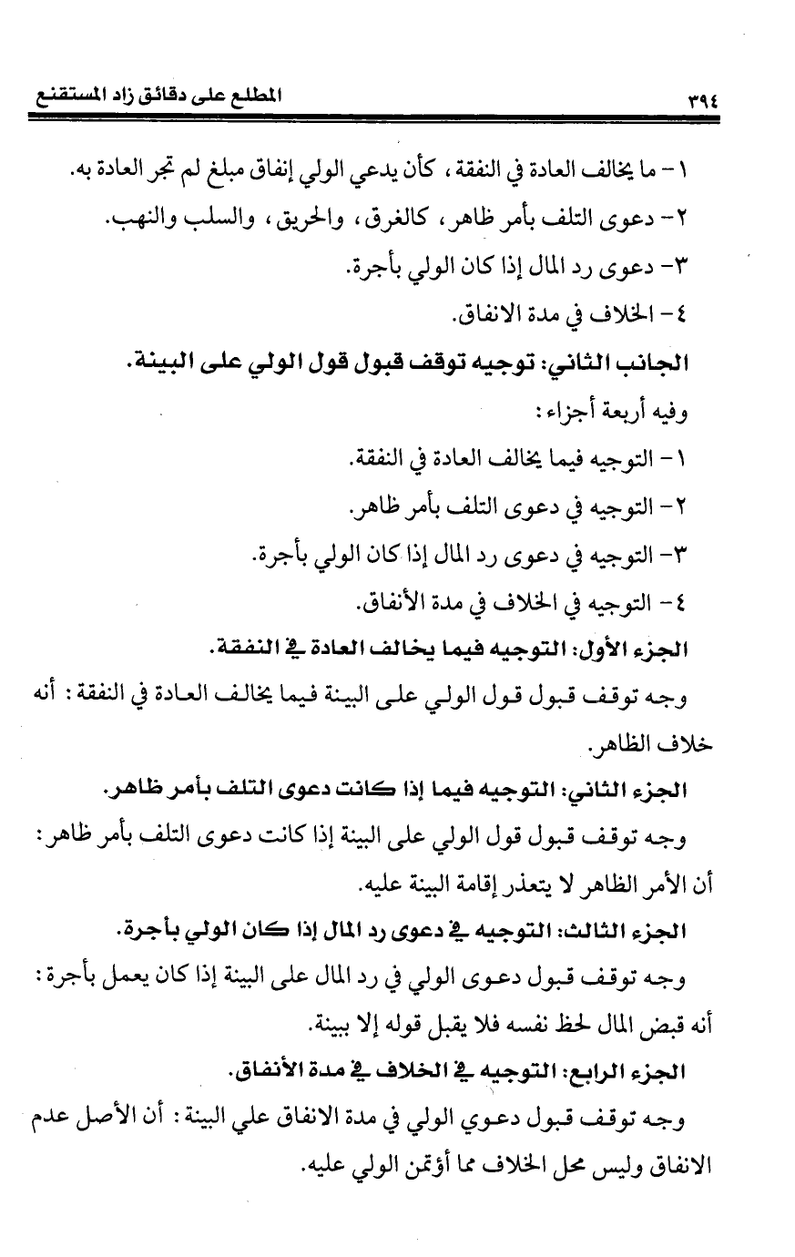 الجزء الرابع: التوجيه في الخلاف في مدة الإنفاق.
