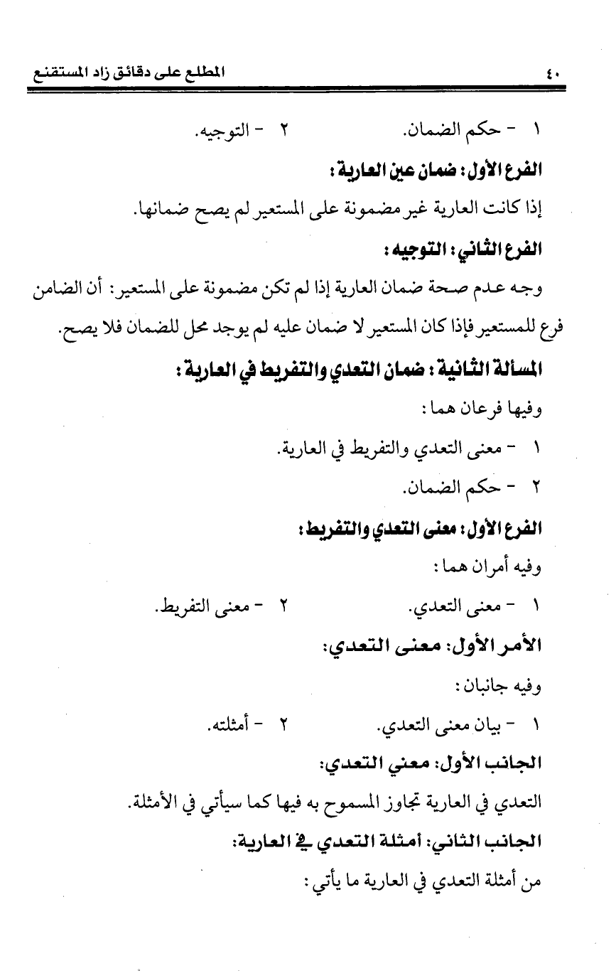 المسألة الثانية: ضمان التعدي والتفريط في العارية: