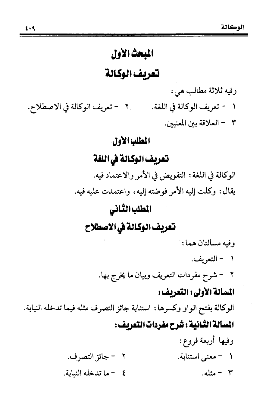 1 - تعريف الوكالة في اللغة.