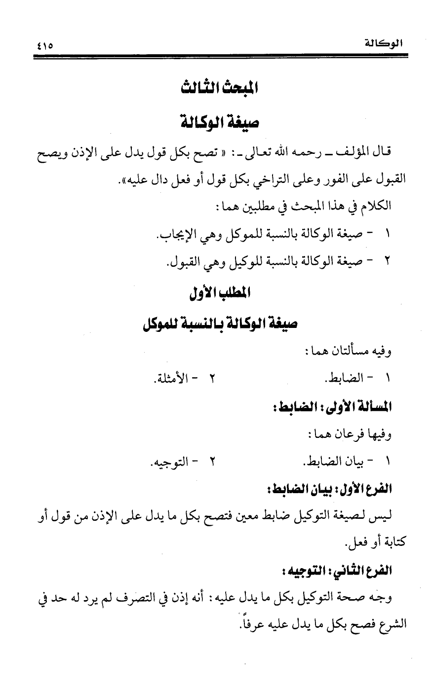 المبحث الثالث صيغة الوكالة