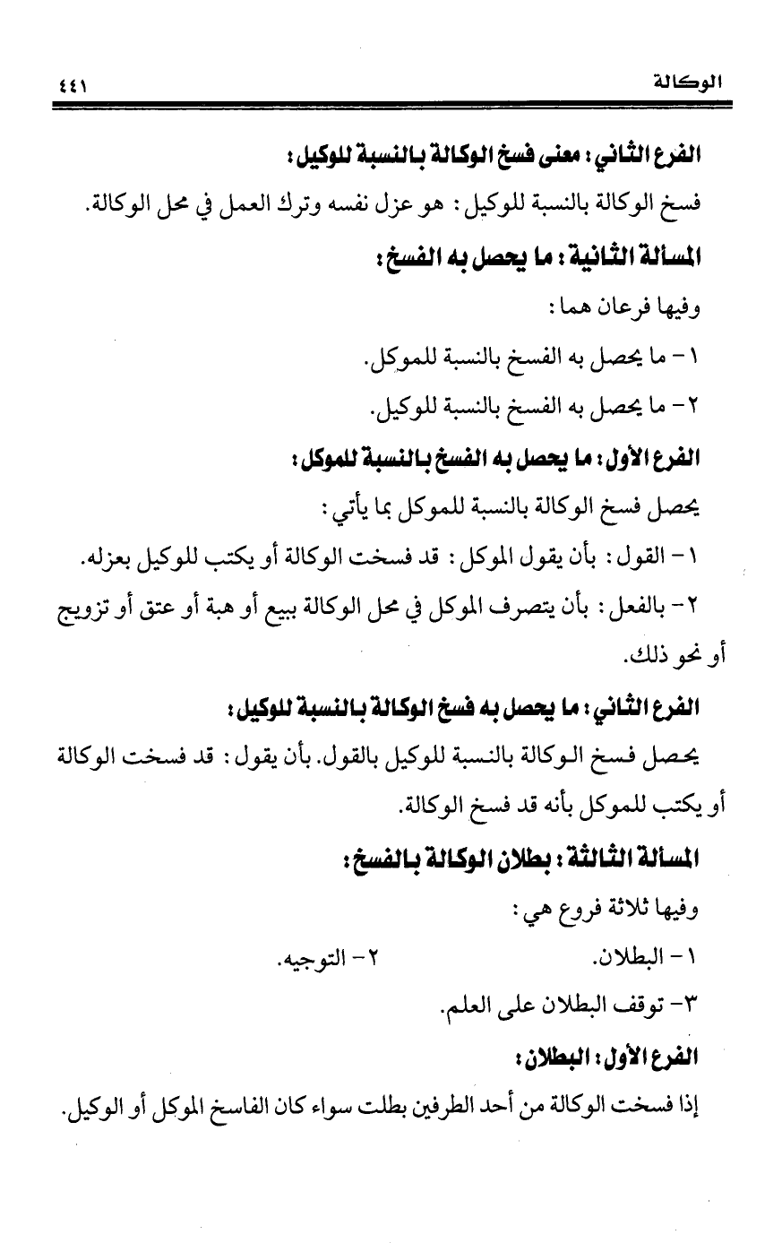 المسألة الثالثة: بطلان الوكالة بالفسخ: