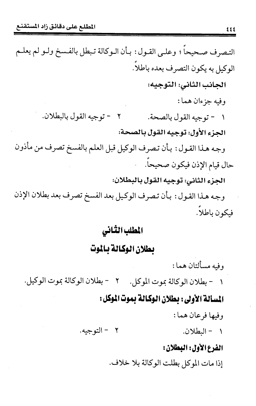 المطلب الثاني بطلان الوكالة بالموت