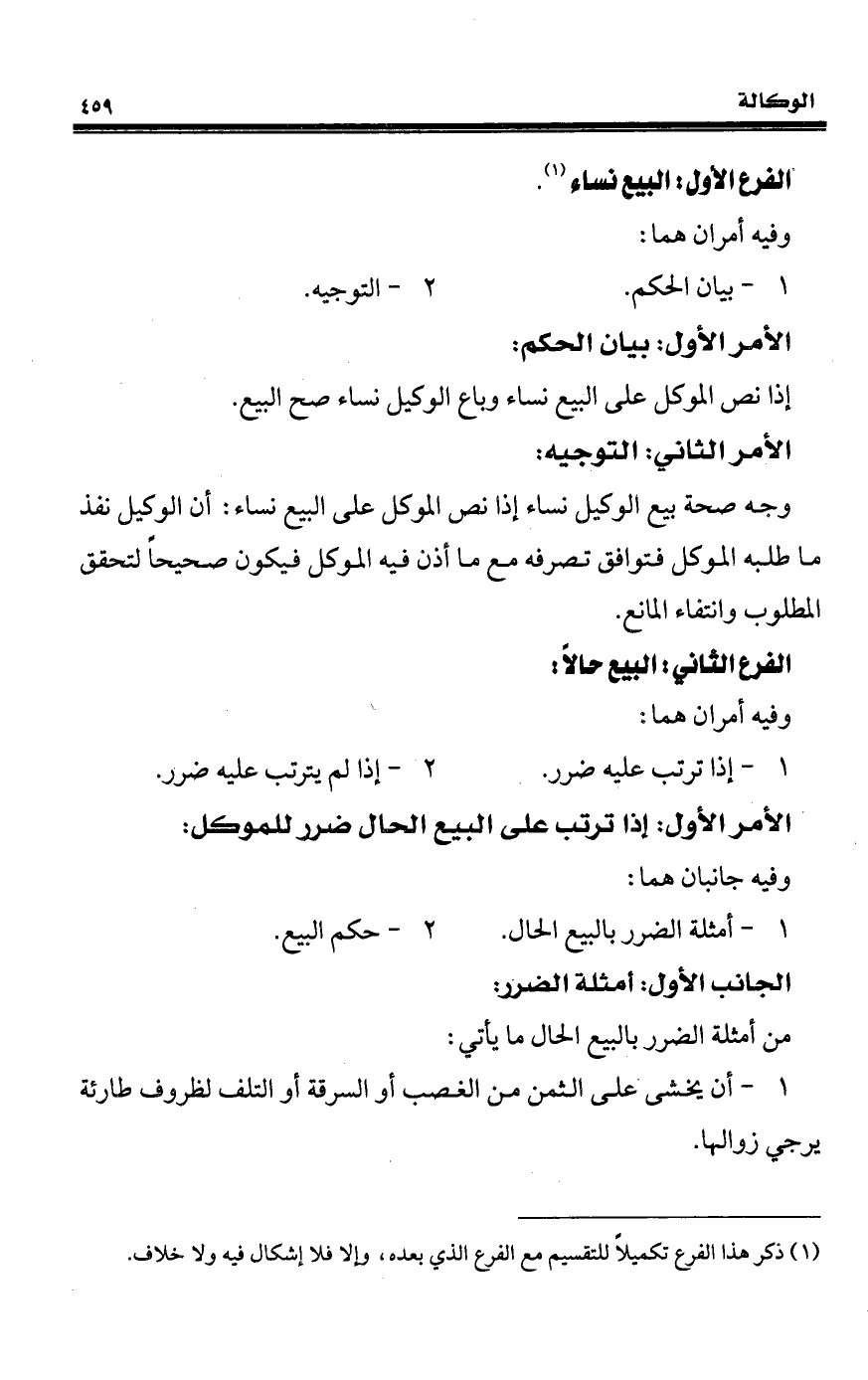 من أمثلة الضرر بالبيع الحال ما يأتي: