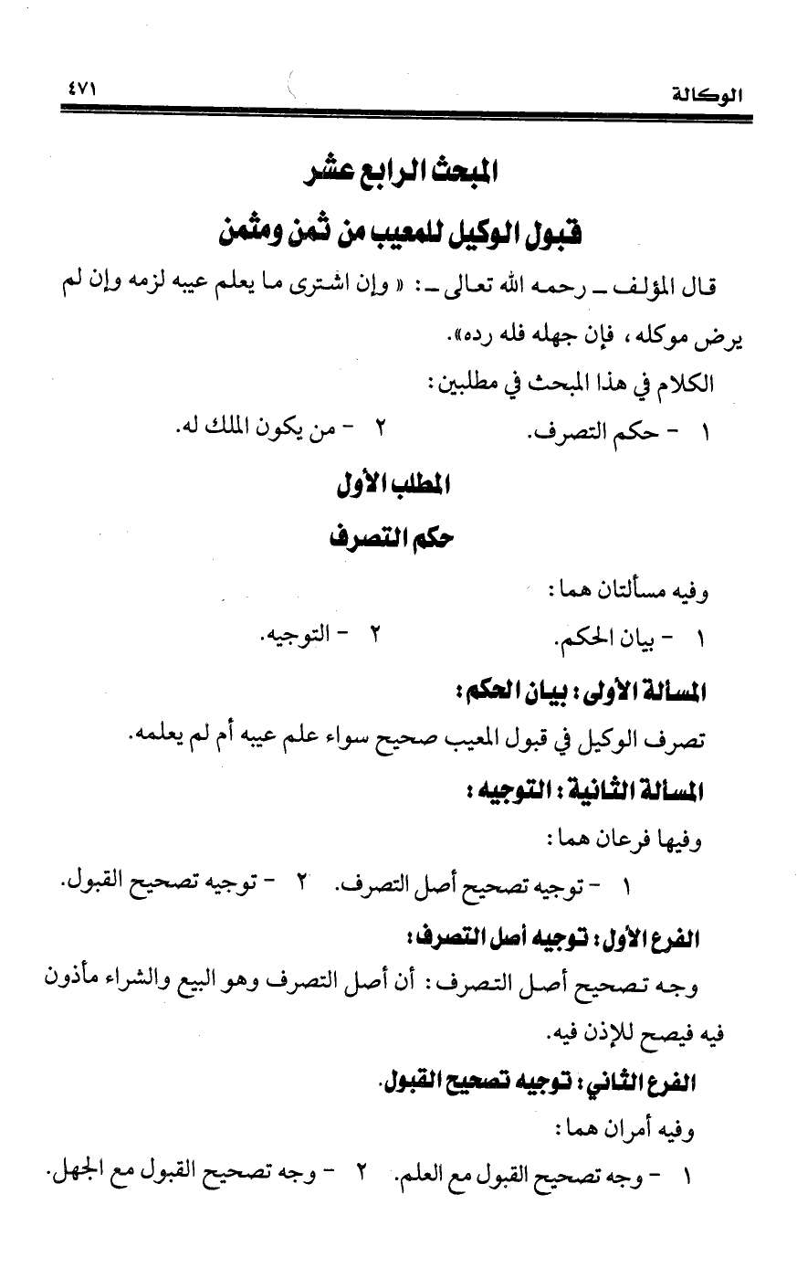 المبحث الرابع عشر قبول الوكيل للمعيب من ثمن ومثمن