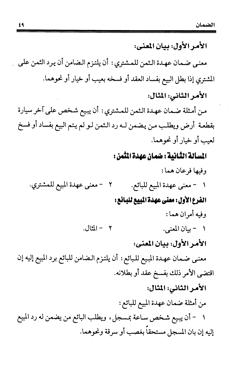 الفرم الأولى: معنى عهدة المبيع للبائع: