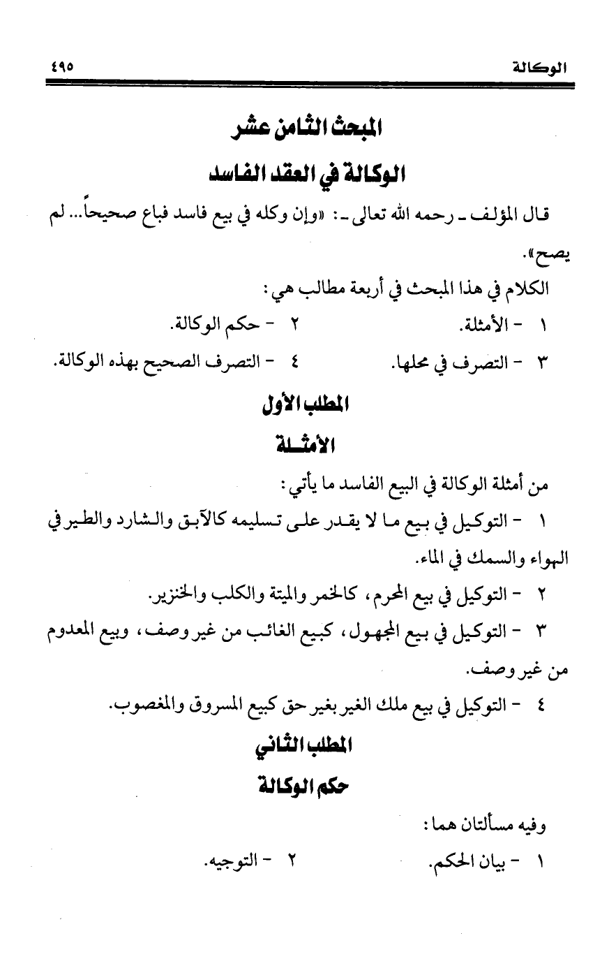 المبحث الثامن عشر الوكالة في العقد الفاسد