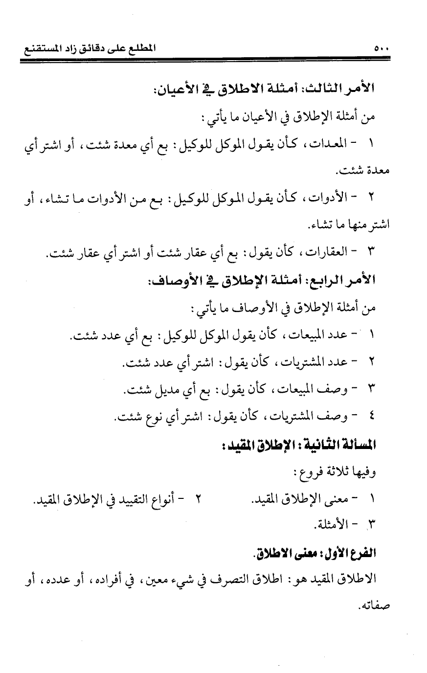 1 - عدد المبيعات، كأن يقول الموكل للوكيل. بيع أي عدد شئت.