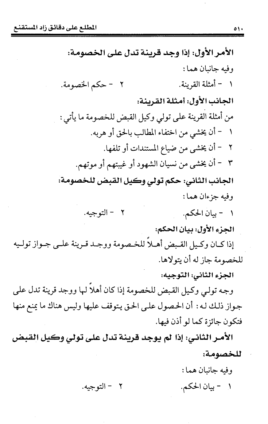الأمر الثاني: إذا لم يوجد قرينة تدل على تولي وكيل القبض للخصومة: