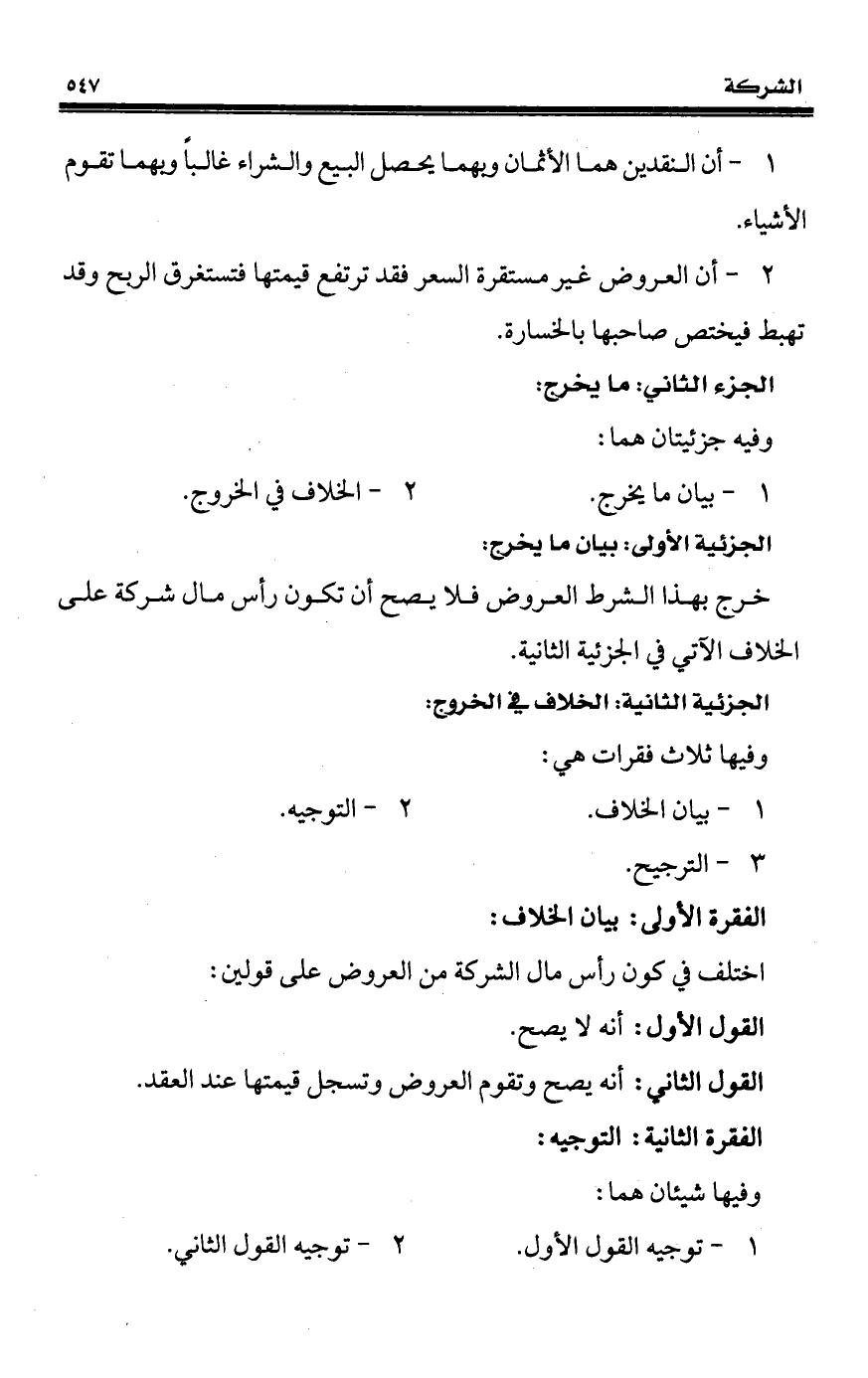 اختلف في كون رأس مال الشركة من العروض على قولين: