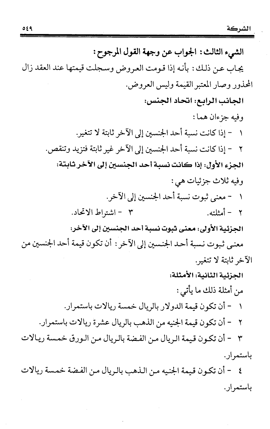 معنى ثبوت نسبة أحد الجنسين إلى الآخر: أن تكون قيمة أحد الجنسين من الآخر ثابتة لا تتغير