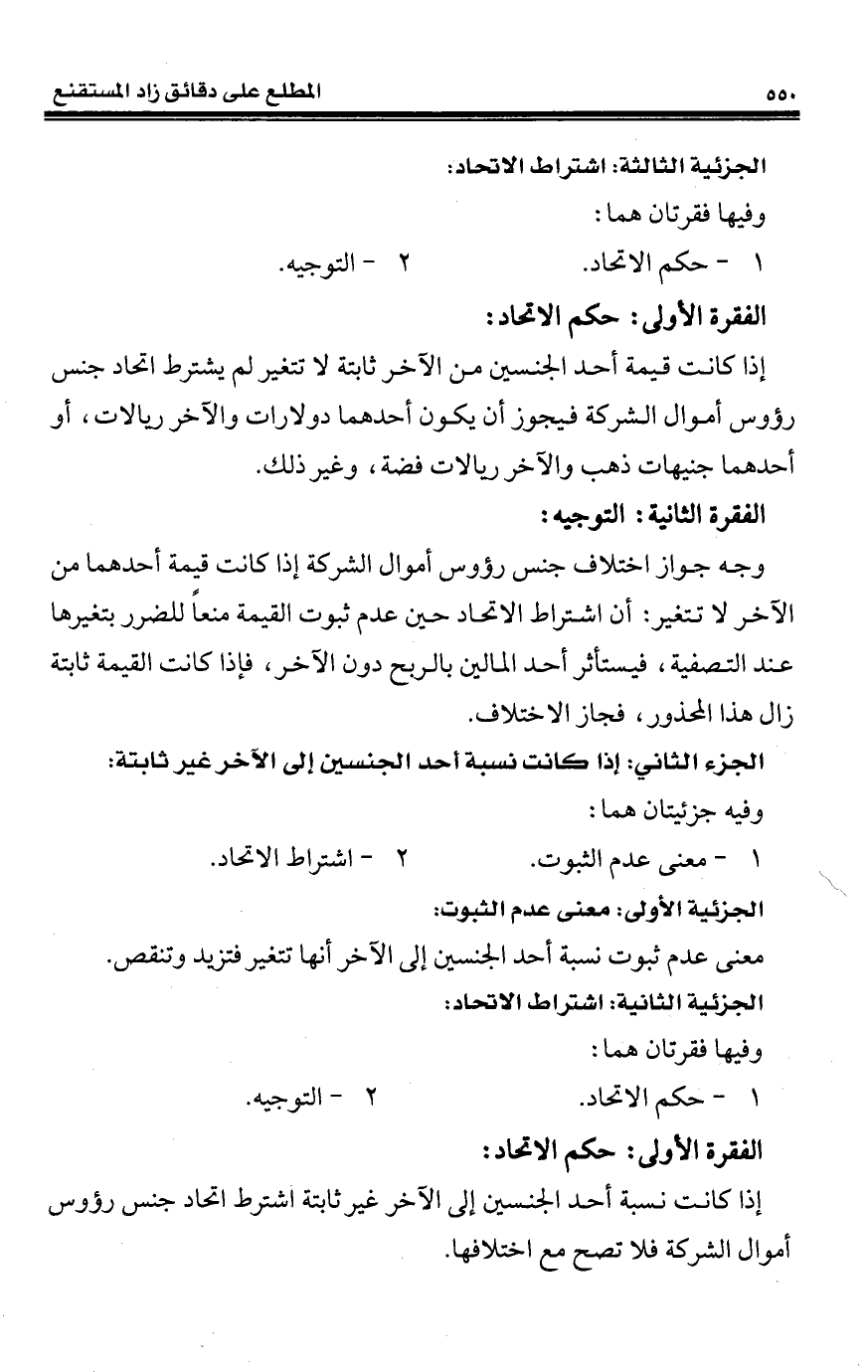 إذا كانت قيمة أحد الجنسين من الآخر ثابتة لا تتغير لم يشترط اتحاد جنس رؤوس أموال الشركة فيجوز أن يكون أحدهما دولارات والآخر ريالات، أو أحدهما جنيهات ذهب والآخر ريالات فضة، وغير ذلك.