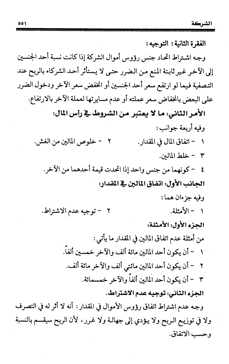 الأمر الثاني: ما لا يعتبر من الشروط في رأس المال: