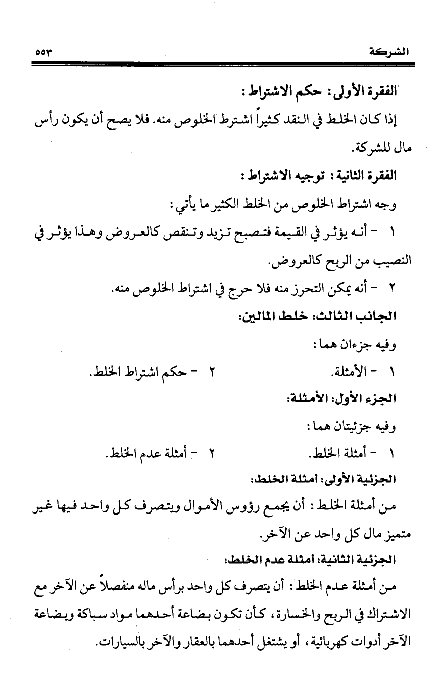 إذا كان الخلط في النقد كثيراً اشترط الخلوص منه. فلا يصح أن يكون رأس مال للشركة.