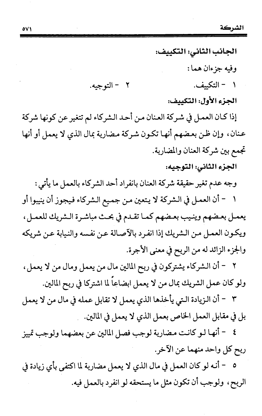 1 - أن العمل في الشركة لا يتعين من جميع الشركاء فيجوز أن ينيبوا أو يعمل بعضهم وينيب بعضهم كما تقدم في بحث مباشرة الشريك للعمل، ويكون العمل من الشريك إذا انفرد بالآصالة عن نفسه والنيابة عن شريكه والجزء الزائد له من الربح في معنى الأجرة.
