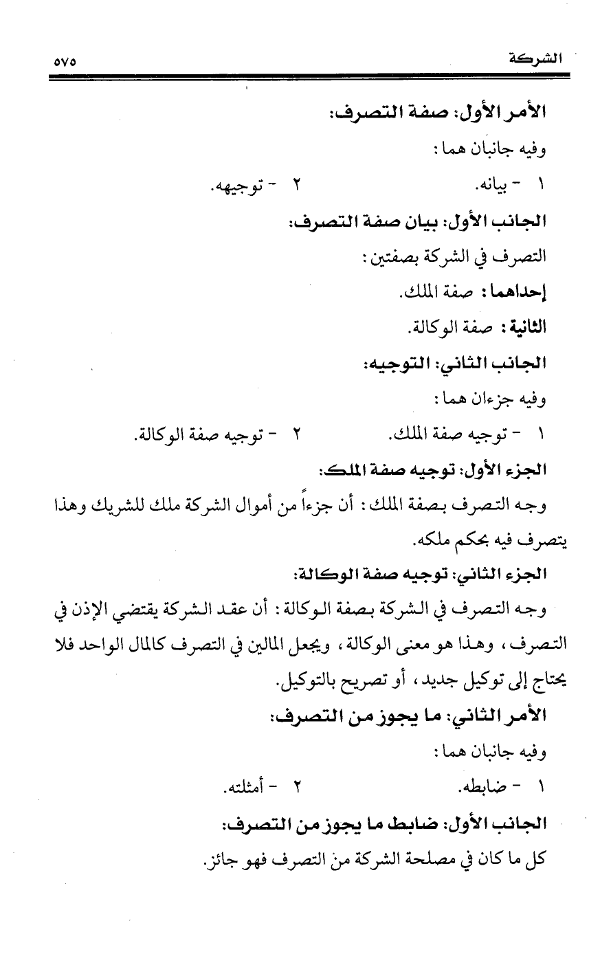 وجه التصرف بصفة الملك: أن جزءاً من أموال الشركة ملك للشريك وهذا يتصرف فيه بحكم ملكه.
