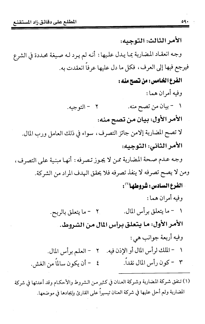 الأمر الأول: ما يتعلق برأس المال من الشروط.