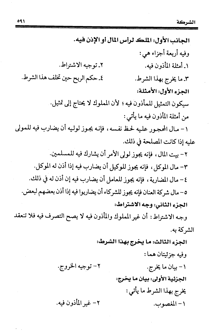 الجانب الأول: الملك لرأس المال أو الإذن فيه.