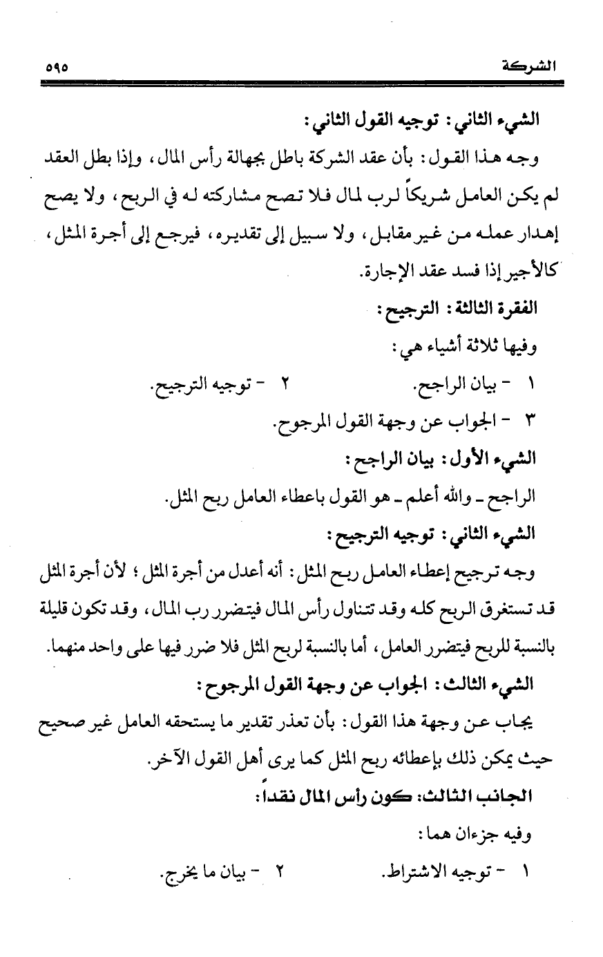 وجه هذا القول: بأن عقد الشركة باطل بجهالة رأس المال، وإذا بطل العقد لم يكن العامل شريكاً لرب المال فلا تصح مشاركته له فى الربح، ولا يصح إهدار عمله من غير مقابل، ولا سبيل إلى تقديره، فيرجع إلى أجرة المثل، كالأجير إذا فسد عقد الإجارة.
