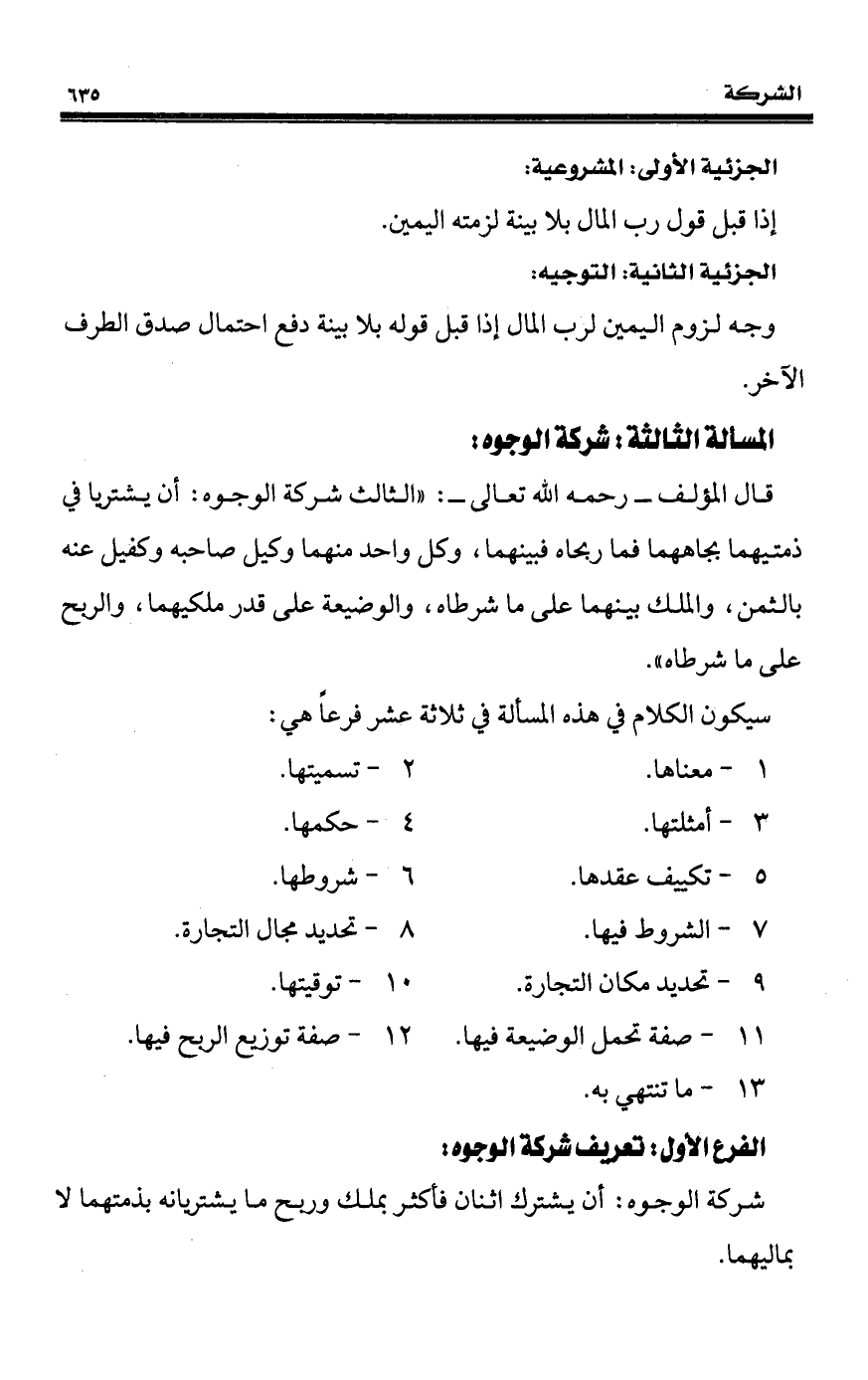 شركة الوجوه: أن يشترك اثنان فأكثر بملك وربح ما يشتريانه بذمتهما لا بماليهما.