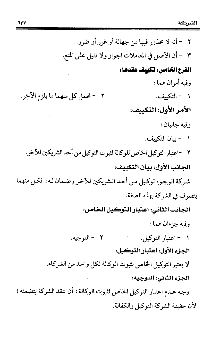 شركة الوجوه توكيل من أحد الشريكين للآخر وضمان له، فكل منهما يتصرف في الشركة بهذه الصفة.