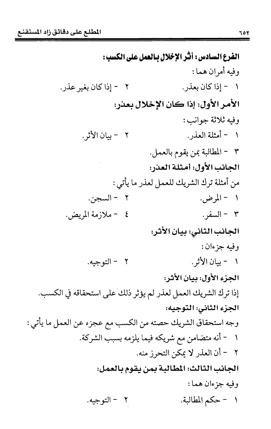 من أمثلة ترك الشريك للعمل لعذر ما يأتي: