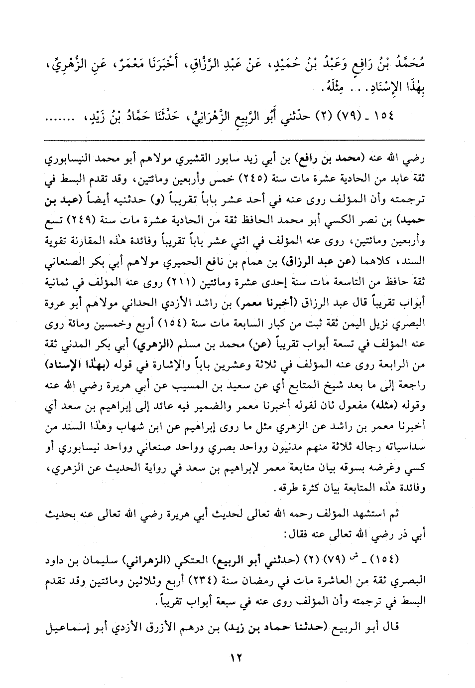 ١٥٤ - (٧٩) (٢) حَدَّثني أَبُو الرَّبِيعِ الزَّهْرَانِيُّ، حَدَّثَنَا حَمَّادُ بْنُ زَيدٍ،